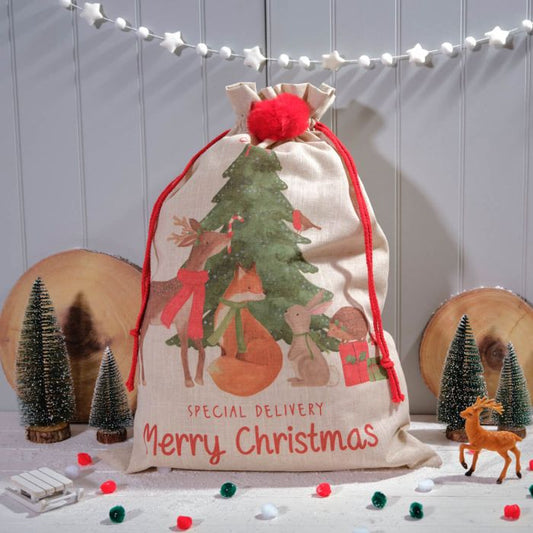 Winter Wonderland Christmas Sack with Pom Poms
