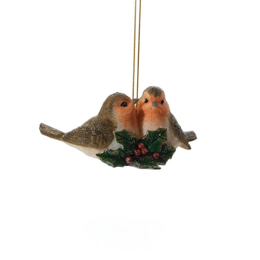 Robins with Holly and Berries Christmas Tree Ornament