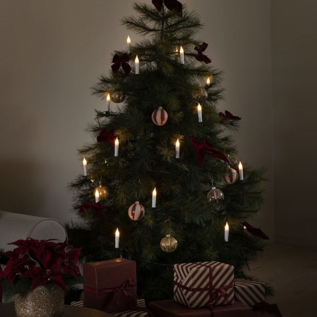 This gorgeous set of Christmas tree candle lights will elevate your festive centre piece into the most beautiful display. Traditionally candles were used to illuminate the festive tree creating a soft lighting effect for a warm and cosy Christmas. This stunning set of 20 mains powered LED candles are designed to look like the real thing with the dripping wax effect and flame shaped bulbs and green cable ideal to hide in the tree