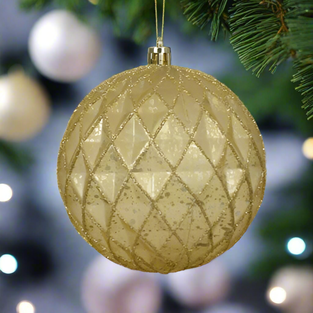 Add a touch of traditional splendour to you festive display with with gorgeous oversized bauble. This antique gold bauble is made to look distressed with its tarnished gold to give a vintage feel and finished with glitter to give a magical festive spackle to you wonderful display. Perfect for the Christmas tree., set in a garland or hanging tastefully from a ceiling where ever you choose these beautiful decoration will look truly magical.