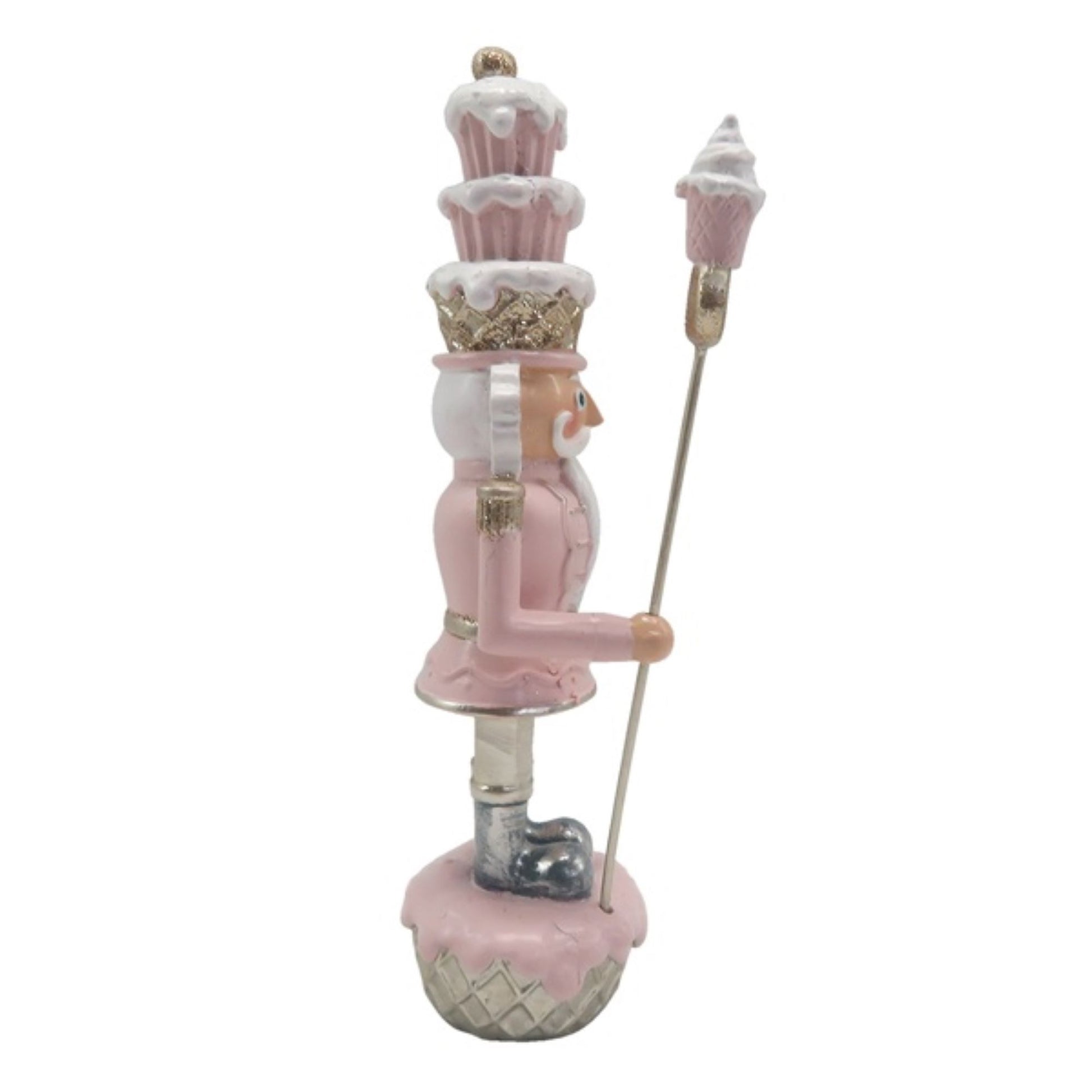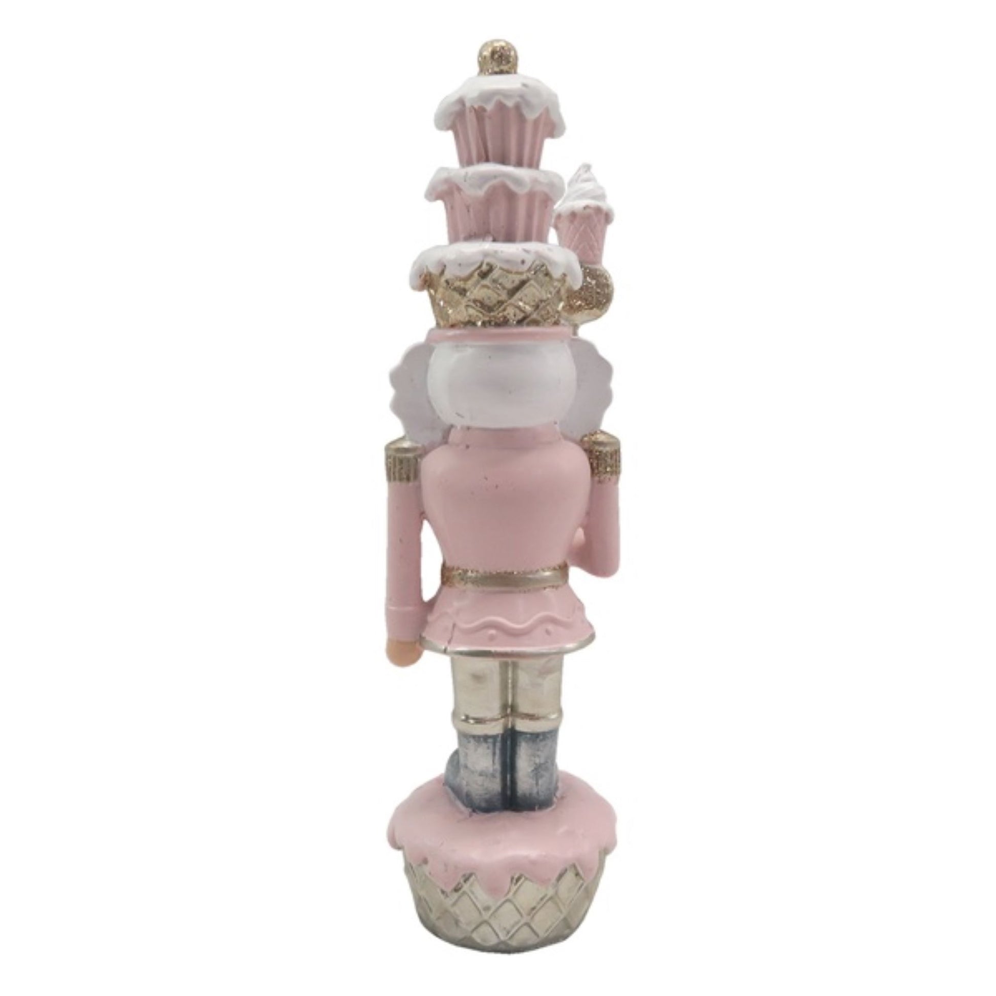 Elegantly standing on guard watching over all your festivities this glorious cupcake nutcracker Christmas decoction is simply enchanting. Imagine how wonderful he will look in your home standing on his cupcake stand dressed beautifully in his pink uniform ready to great all with a warm welcome. The perfect addition to any candy cane themed display.