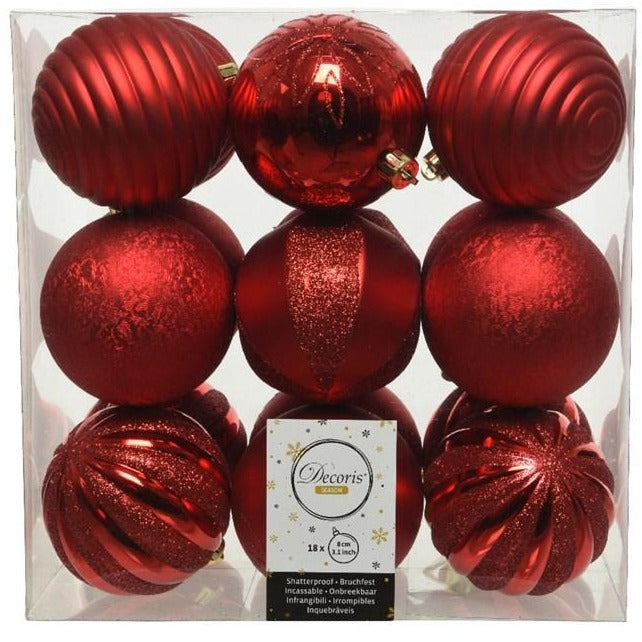Set of 18 Christmas Red Mixed Patterned Baubles