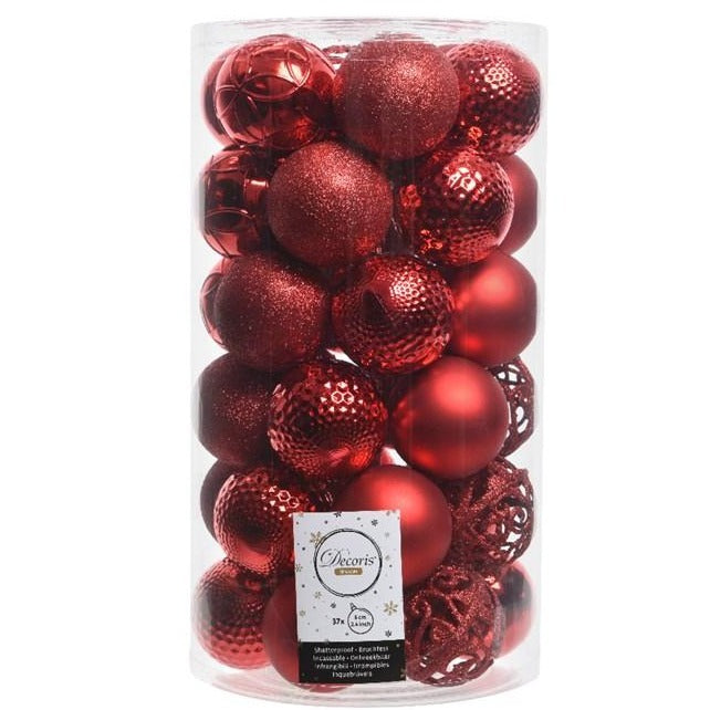 Set of 37 Mixed Christmas Red 6cm Baubles