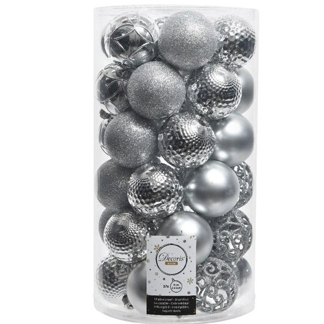 Set of 37 Mixed Silver 6cm Christmas Baubles