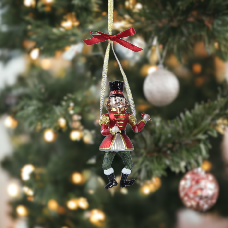 Bring a festive touch to your home with this vibrant glass nutcracker decoration! Crafted from bright glass and featuring a gleaming gold hanging ribbon, it adds a merry, timeless look that's perfect for the holidays.