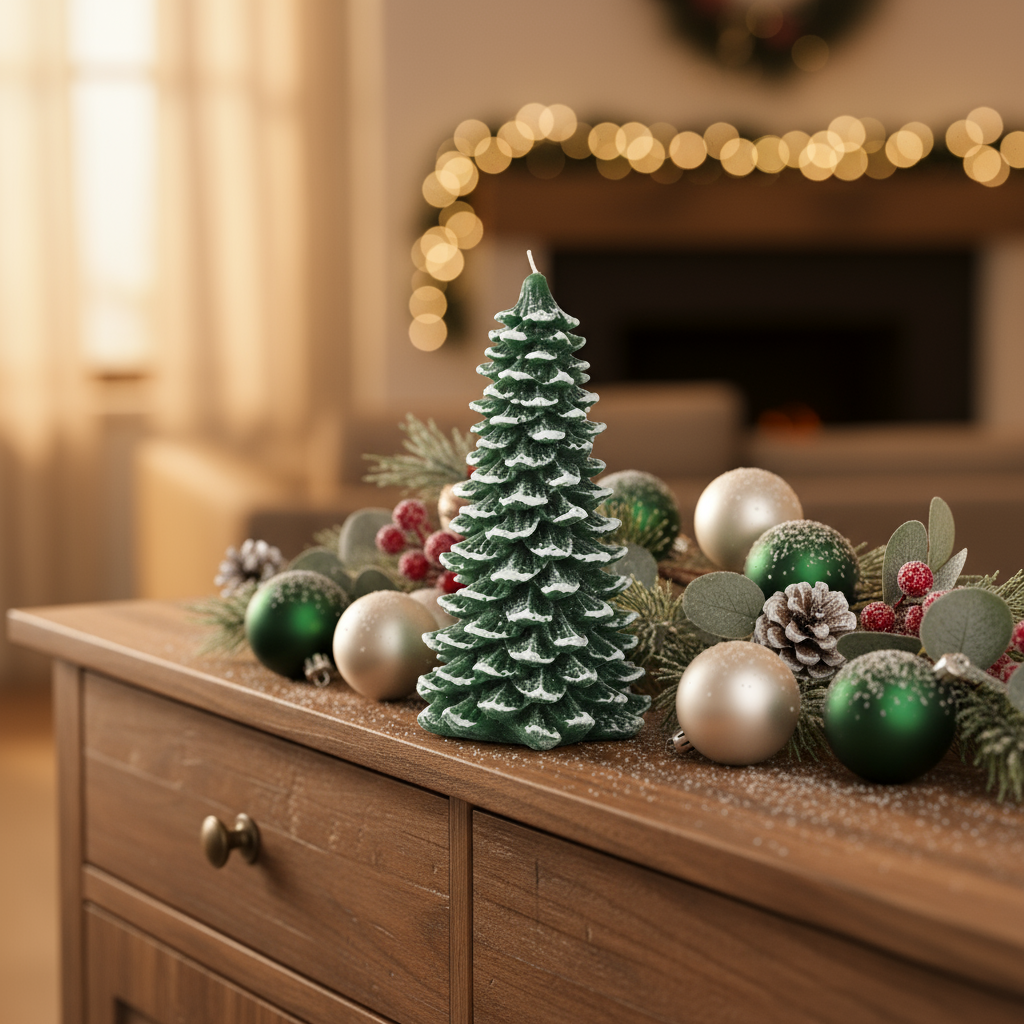 Capture the serene beauty of winter with this elegant Green Snowy Christmas Tree Candle. Standing 16.5cm tall, its delicate snowy effect and gentle flicker create a warm, inviting glow reminiscent of peaceful forest walks. Perfect for adding a sophisticated touch to cosy yuletide gatherings, it evokes timeless memories while enhancing any festive setting with understated charm.