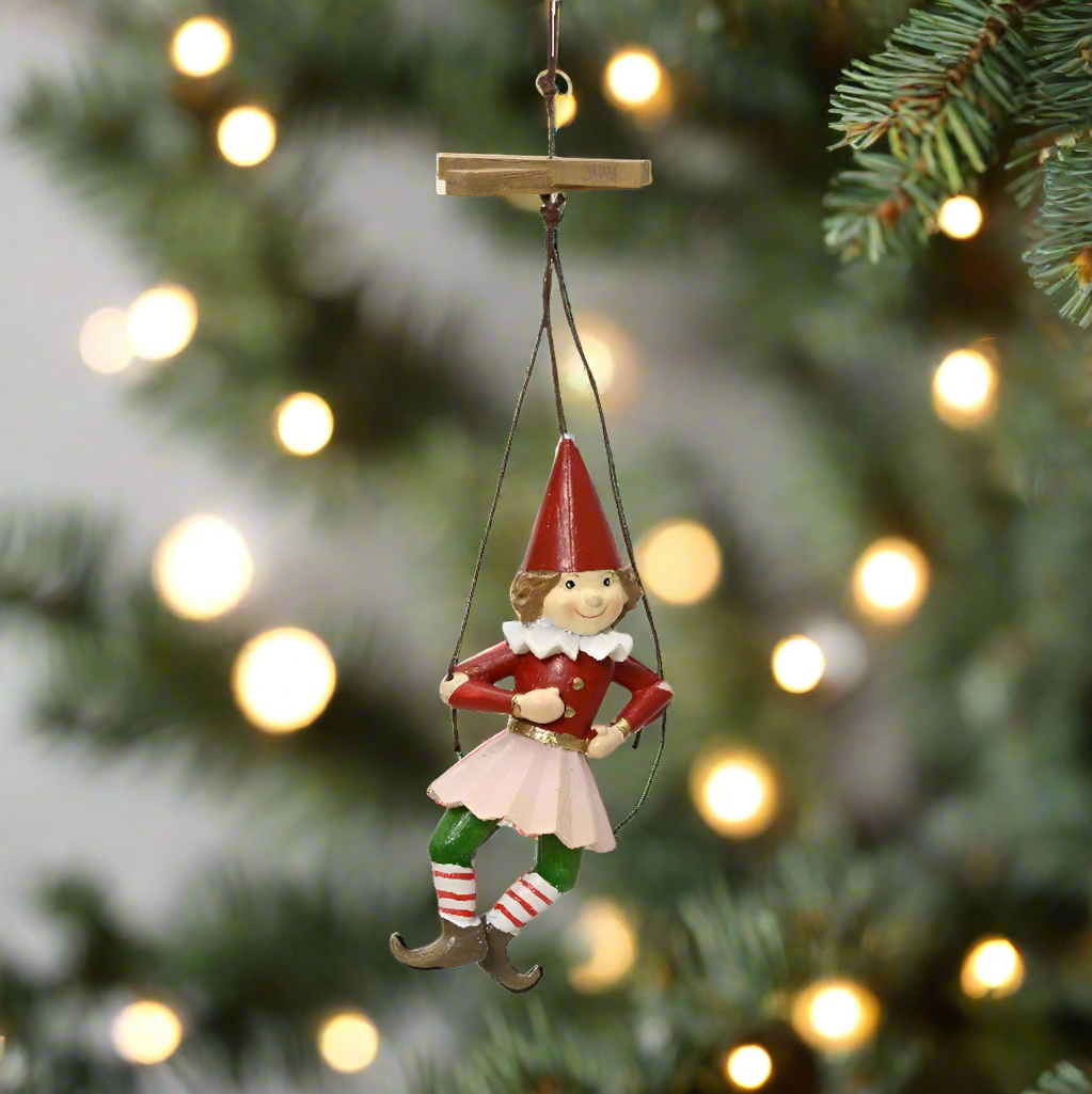 Enchant this festive season with an 11cm hanging doll puppet-style Christmas decoration of timeless, traditional charm. Delightful memories of Christmases past come alive with this classic piece, inspiring an air of timeless luxury and vintage style for all to see. Delight in the magic of the season with this unique, timeless decoration.