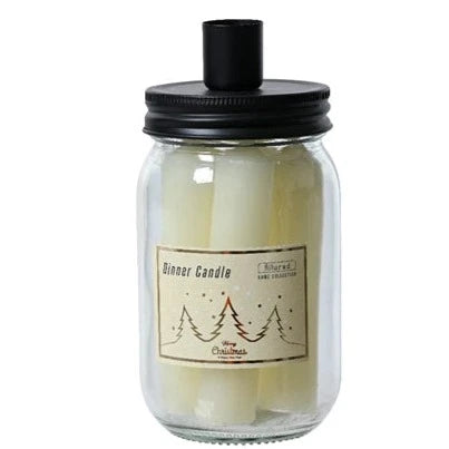 Ivory Mini Christmas Candles with Candle Holder and Storage Jar