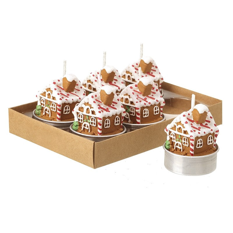Set of 6 Gingerbread House Christmas Tea Lights