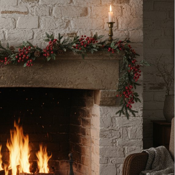 This beautiful Christmas garland will bring the winter woodland into your home this festive season. The green foliage is adorned with stunning frosted berries and pine cones adding to the authentic winter feel .