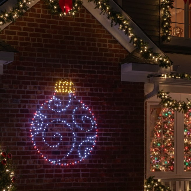 Transform your home into a winter wonderland with our Twinkling Flexibright Christmas Bauble Decoration! The soft glow of red and white LEDs will create a captivating display on a dark winter night. Perfect for both indoor and outdoor use, it's the perfect addition to your festive decor.